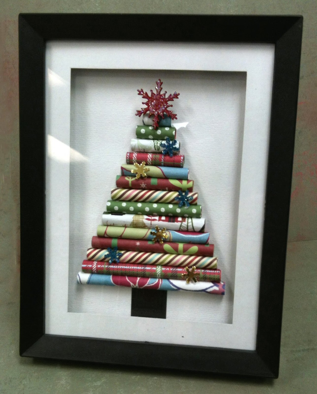 Do you remember the rolled paper Christmas tree that we made in class last year? There are so many pretty Christmas papers and this is a great way to show them off. Roll some of it around your pencil, cut to various lengths and glued onto a backing paper and you have created another lovely gift to give to someone, or keep yourself.